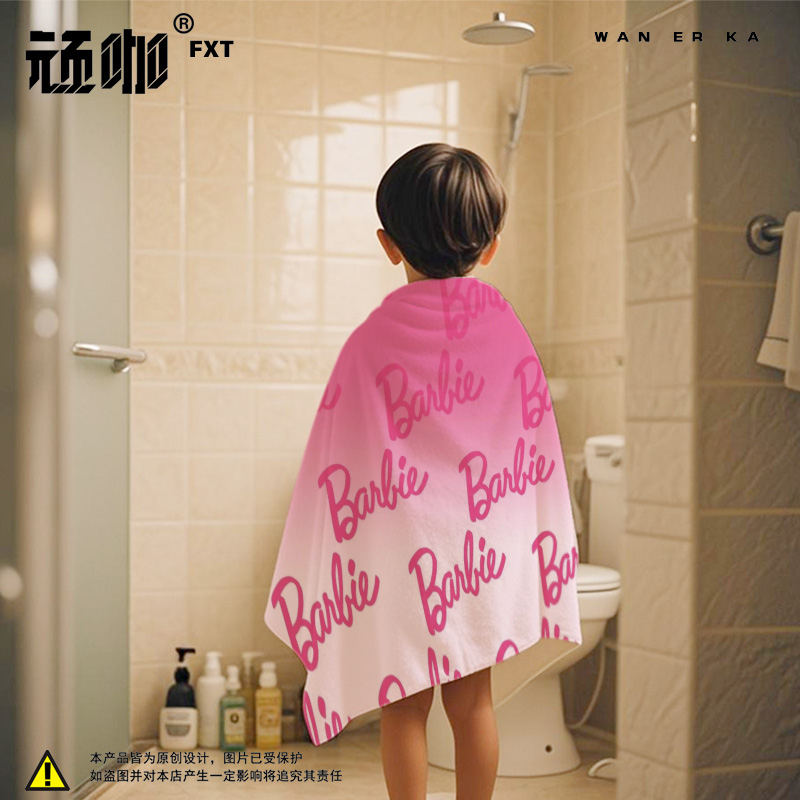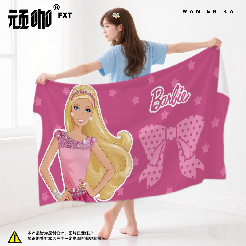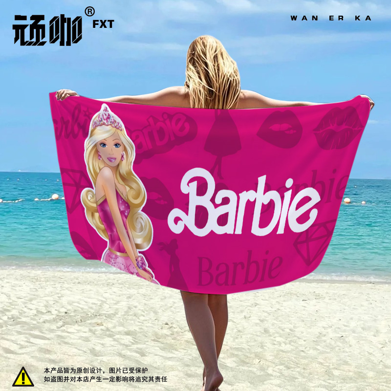 粉色芭比简约少女梦幻儿童毛巾浴巾沙滩游泳巾防晒长披肩海边沙滩