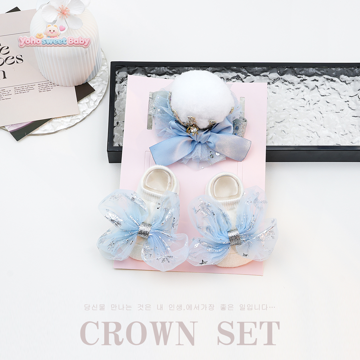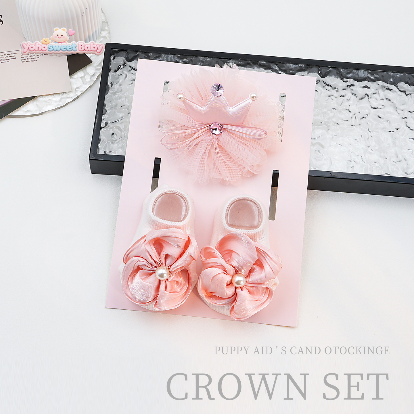 婴儿发带袜子礼盒套装 婴儿满月百日拍照道具ins风新生儿发饰宝宝