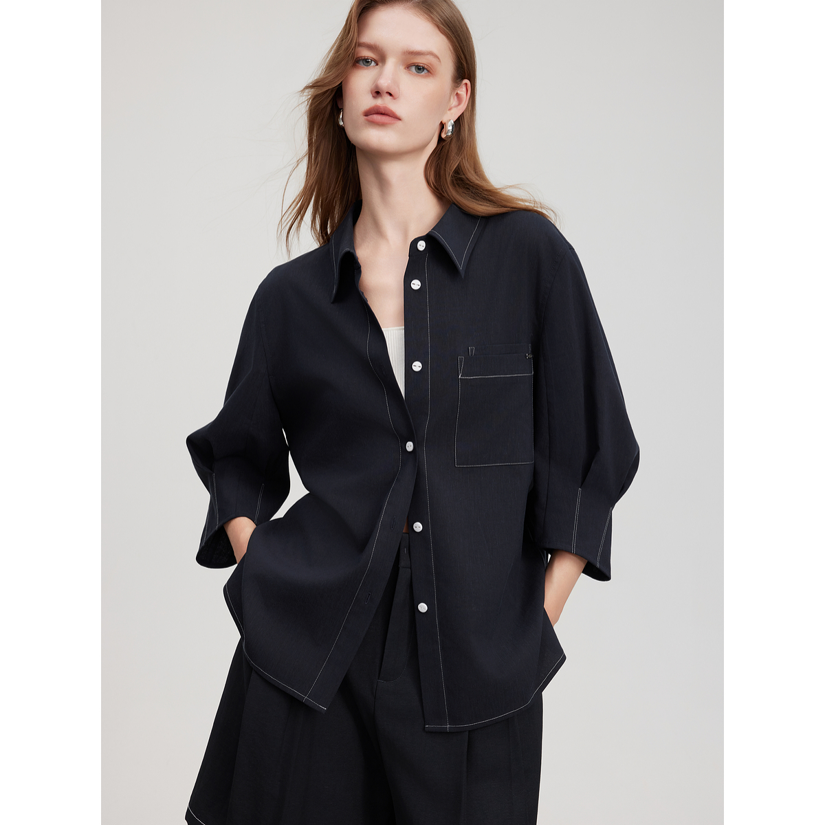 简约休闲轻薄开衫 POLOWALK女式 2025秋冬新品 衬衫 百搭上衣 亚麻长袖