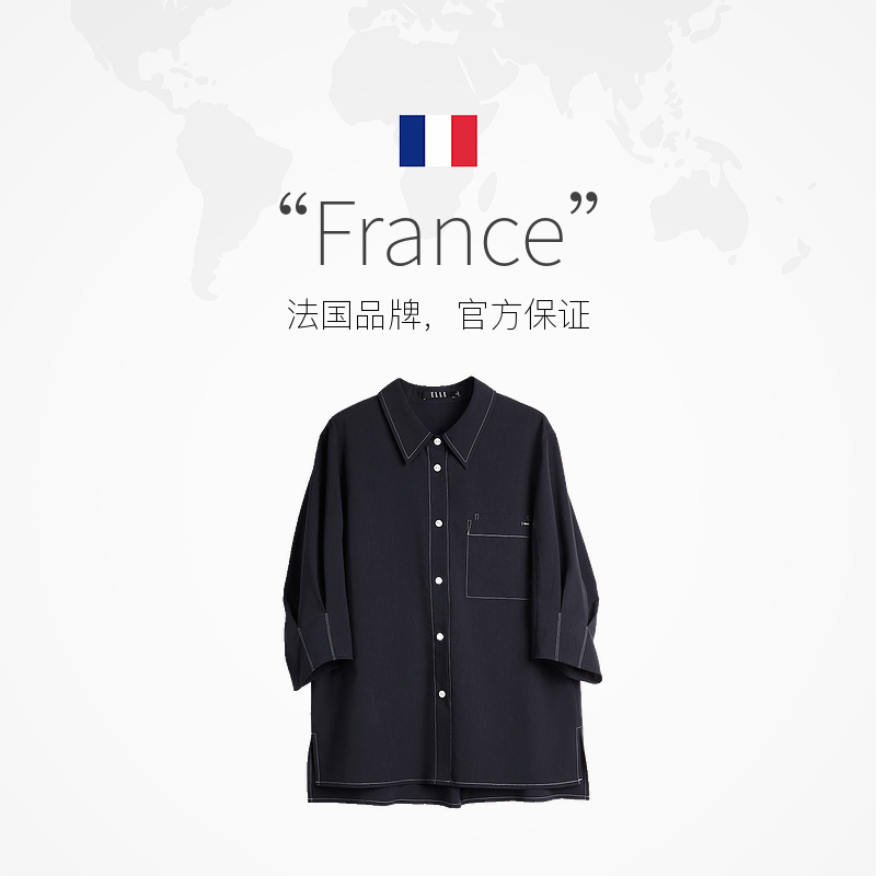 翻领上衣2025秋季 女纯色长袖 Eland衣恋衬衫 新款 100%棉
