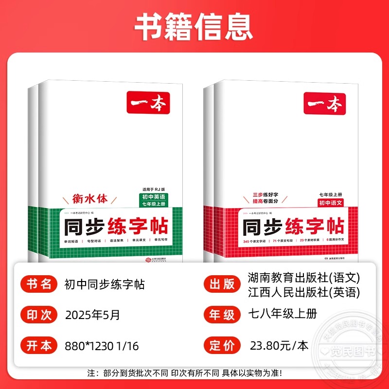 2026版 一本初中生同步练字帖语文英语衡水体练字七年级八年级上册课本字词原文句段单词短语写作素材语法字体漂亮学生专用练习人教