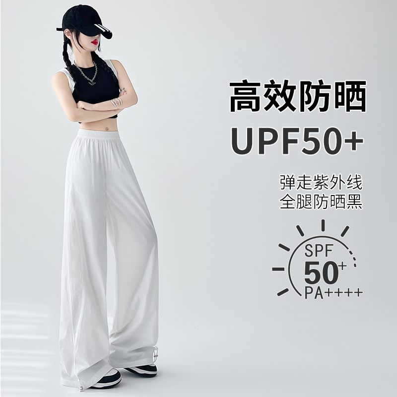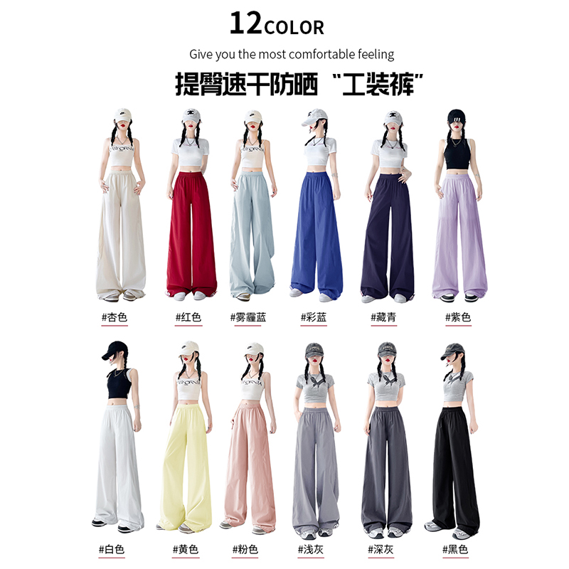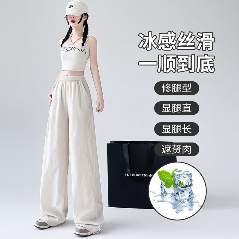 高腰宽松垂感慵懒风运动阔腿百搭休闲裤 女2025夏季 裤 杏色速干工装