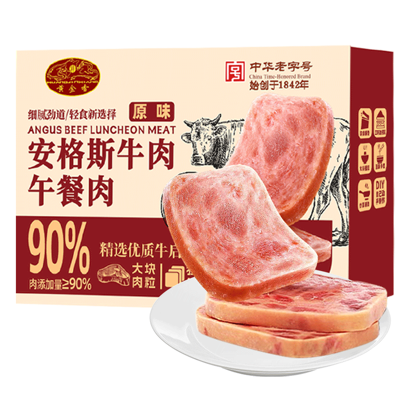黄金香安格斯牛肉午餐肉无添加儿童早餐速熟食搭配即食辅食罐头