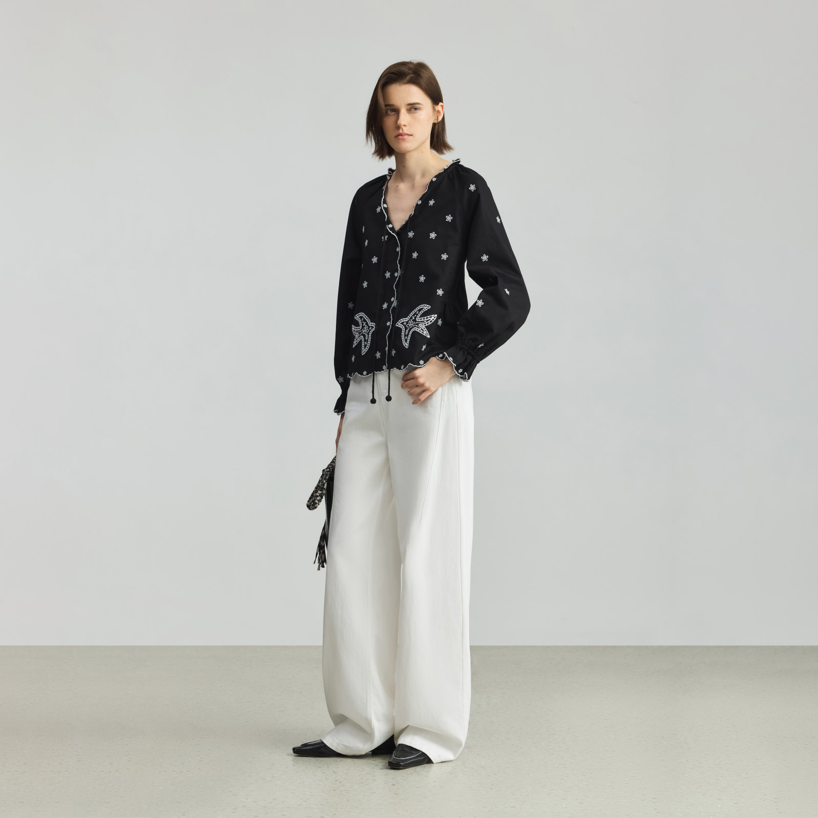白色衬衫 通勤休闲长袖 木耳边立领衬衣女装 新款 上衣 25秋季 KBNE法式