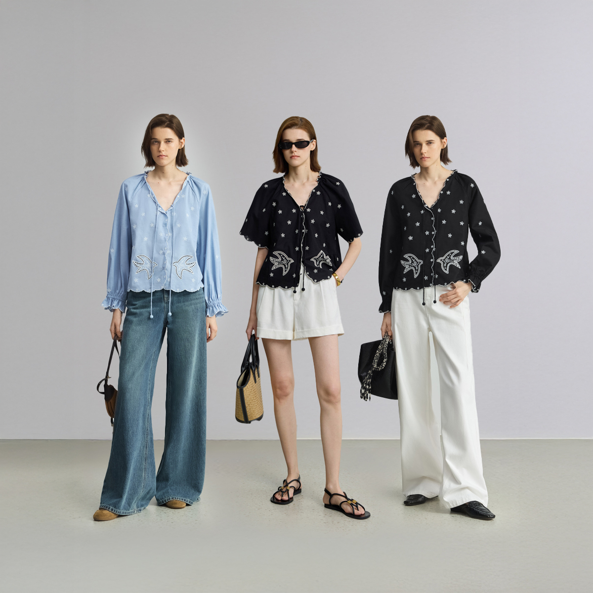 靛蓝牛仔彩扣开衩衬衫 ALLBEINGS25AW秋季 上衣外套女 胡夏同款