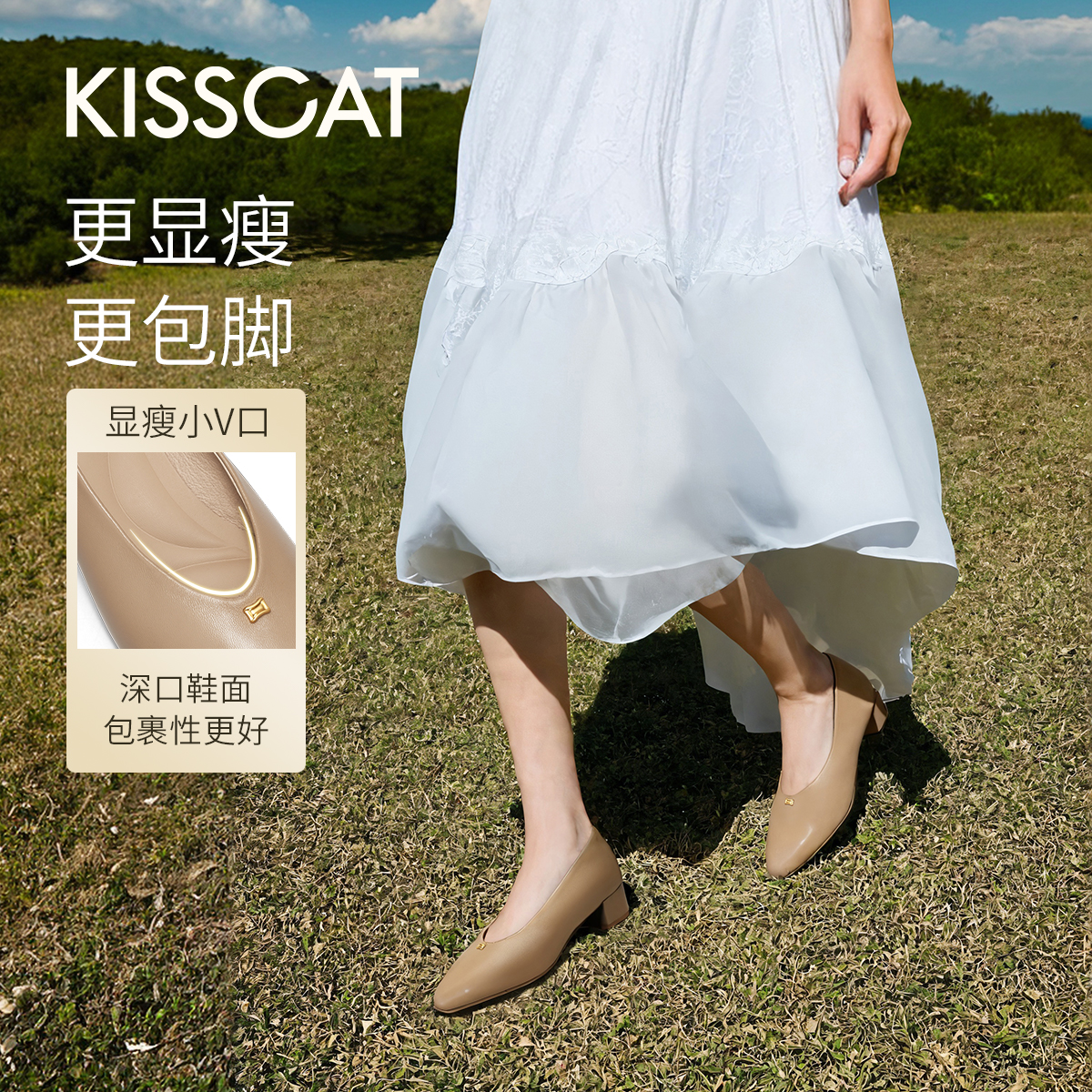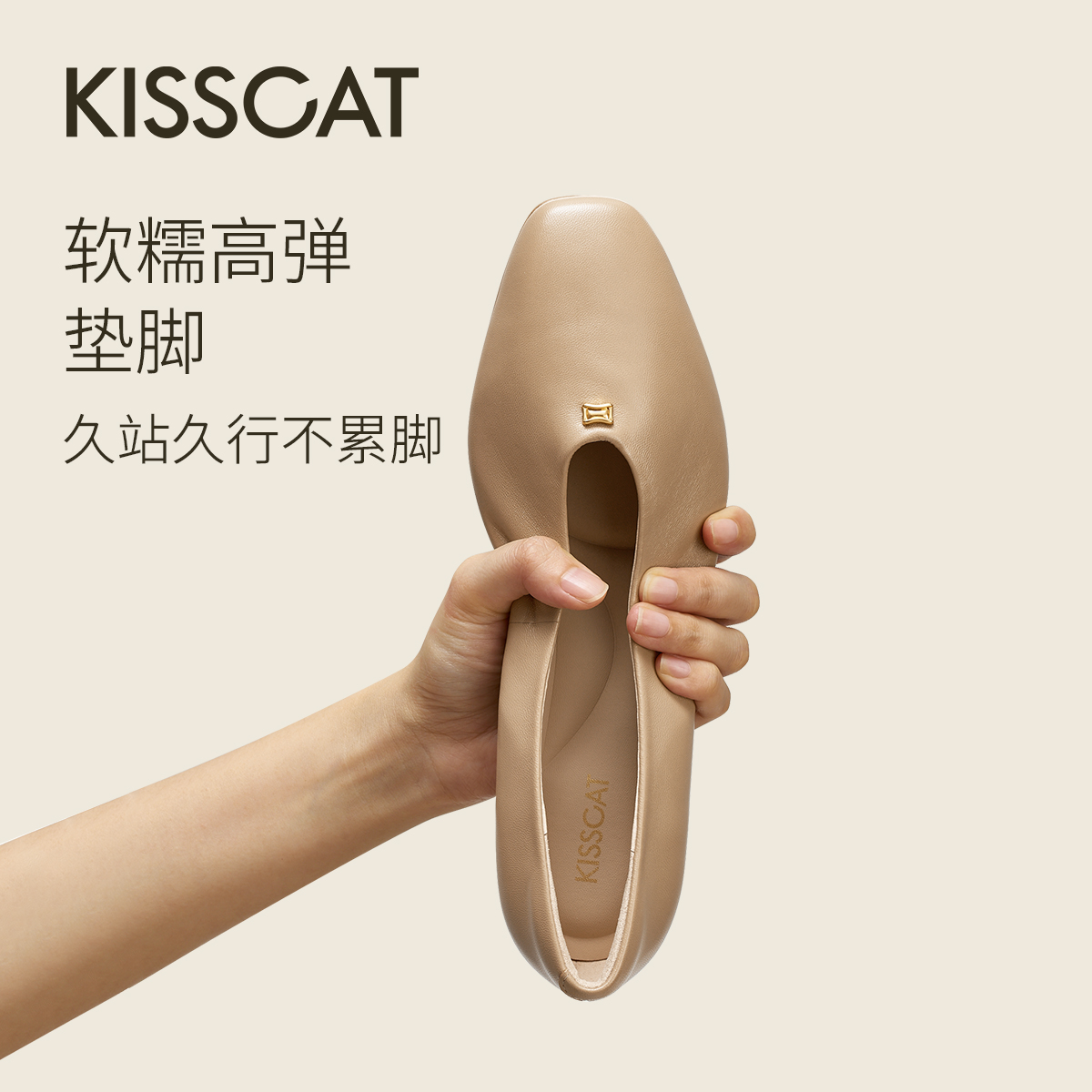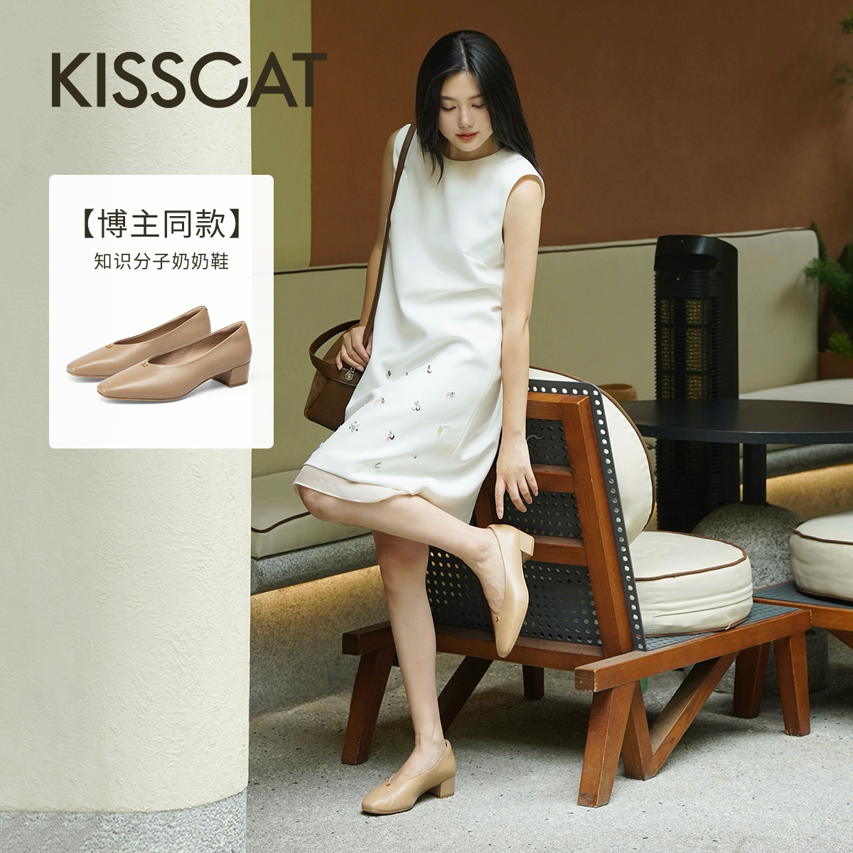裸色单鞋 KISSCAT接吻猫 25秋新款 奶奶鞋 女真皮软不累脚 知识分子
