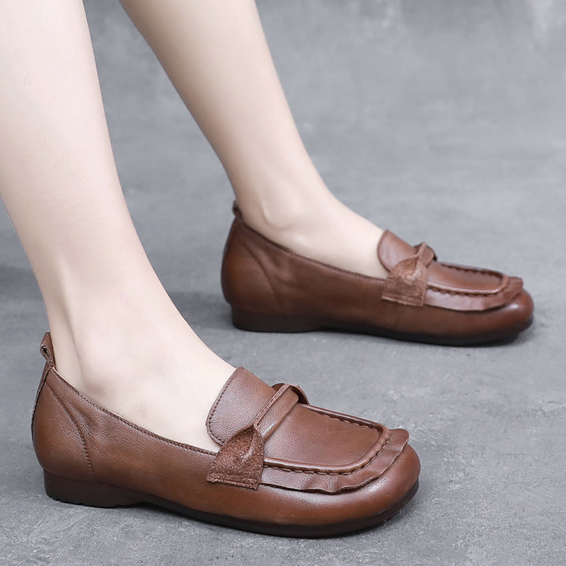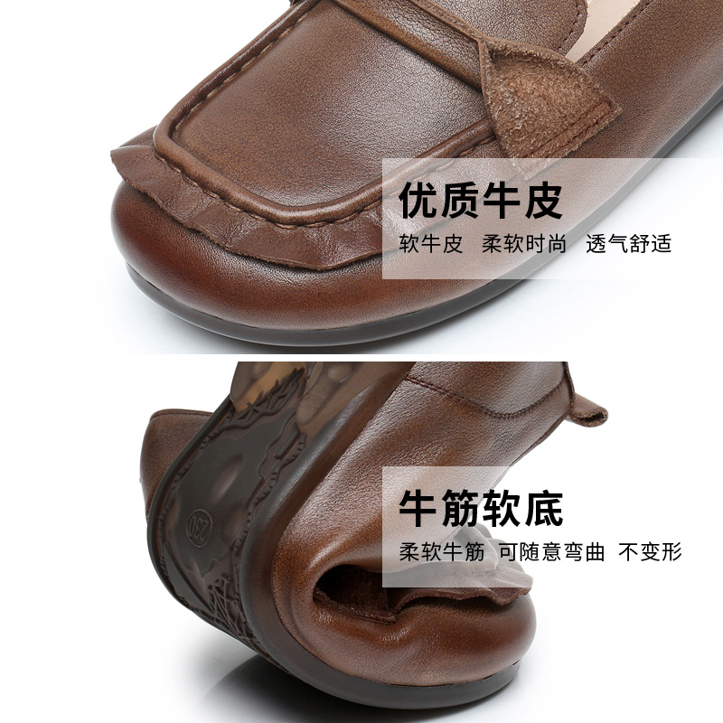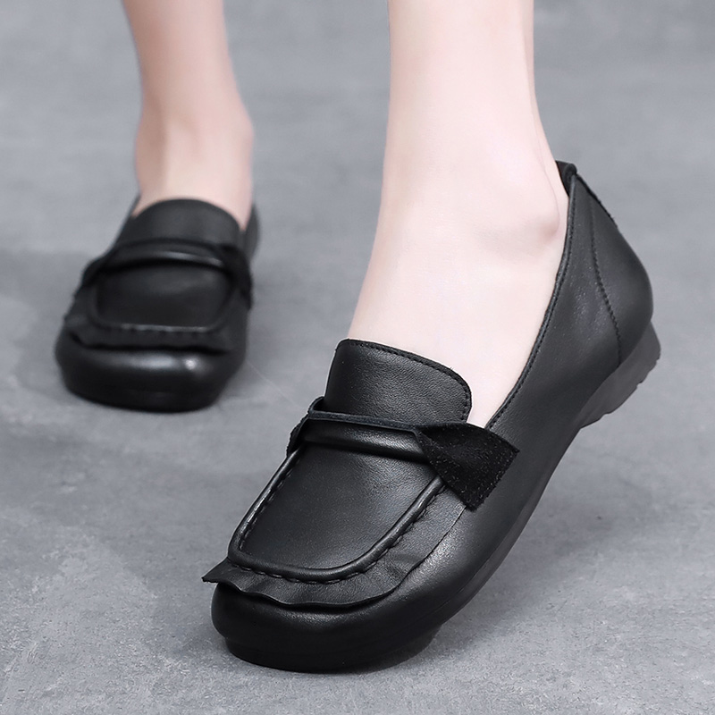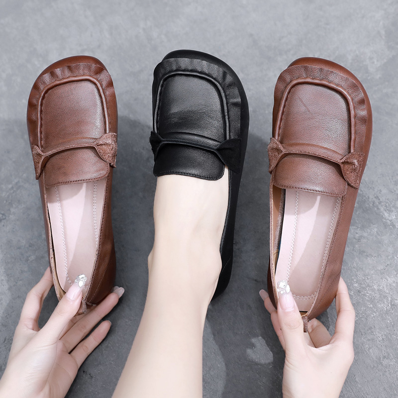 单鞋 女40 懒人鞋 新款 船鞋 平底大码 休闲鞋 2025春季 43舒适真皮瓢鞋