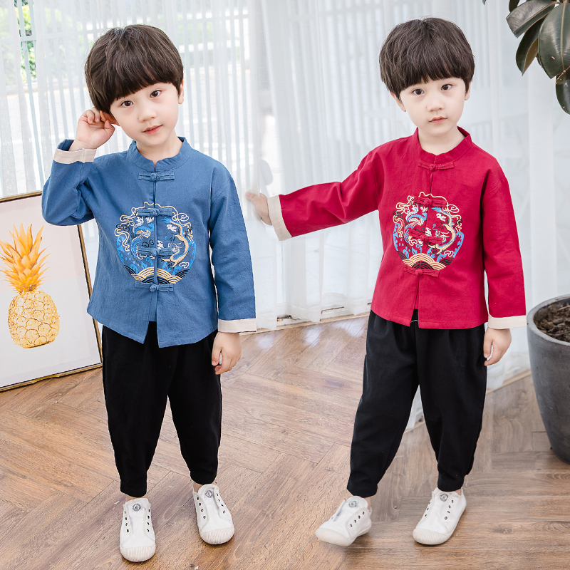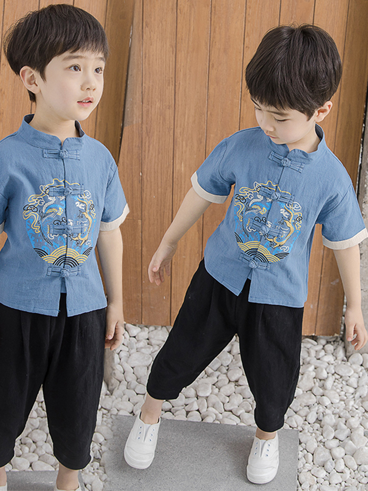 华服夏装 男童汉服复古新款 男孩唐装 古装 儿童传统服饰中秋国庆中式
