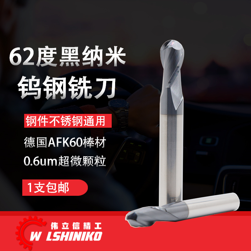伟立信 62度黑纳米钨钢球刀2刃硬质铣刀不锈钢用钢件通用R球形刀