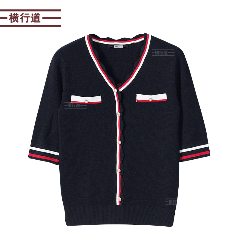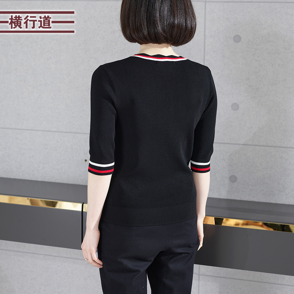 中年妈妈上衣五分袖 针织衫 小香风V领黑色简约大码 女2025秋季 中袖
