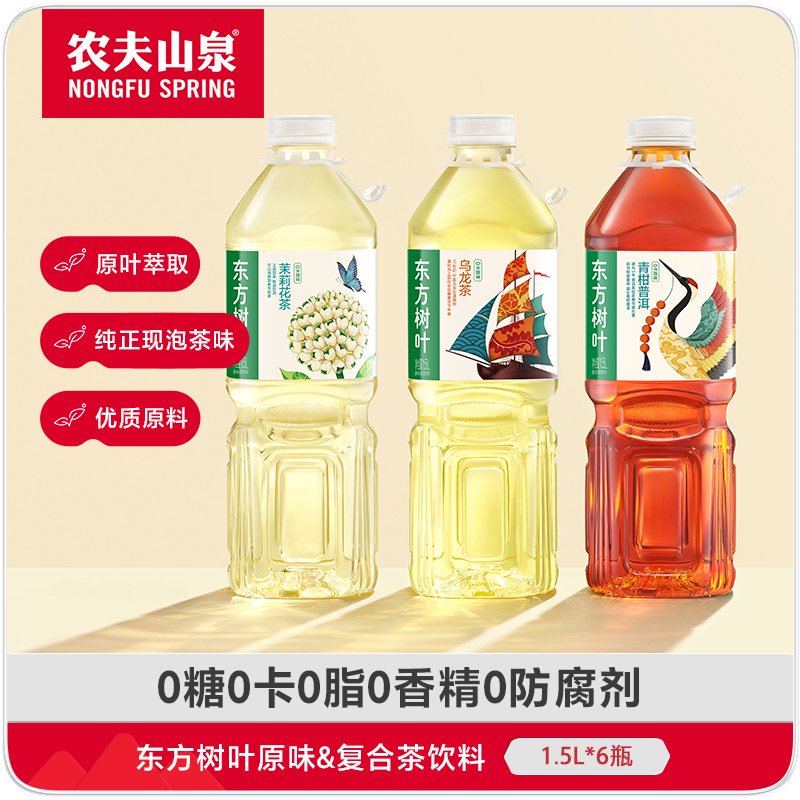上新 新品 农夫山泉东方树叶青柑普洱茶1.5L 6瓶无糖茶饮料