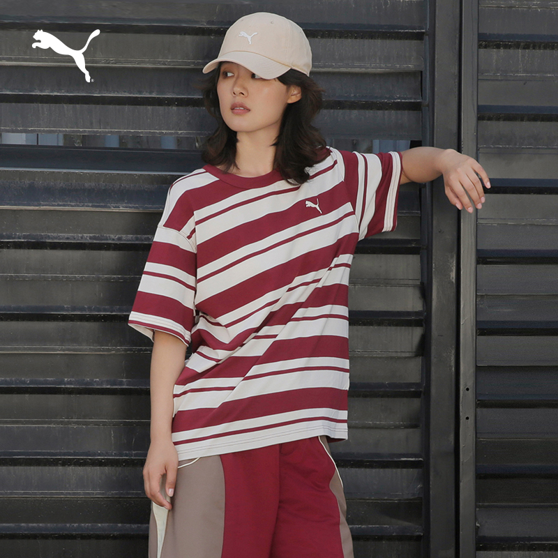 条纹运动上衣 美式 PUMA彪马新款 T恤男女款 633854 复古宽松休闲短袖
