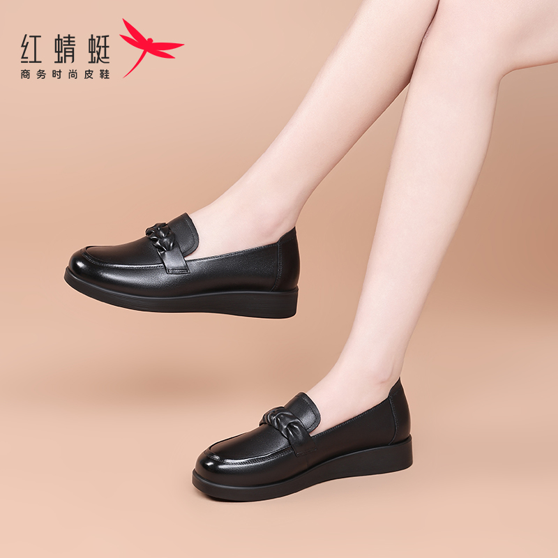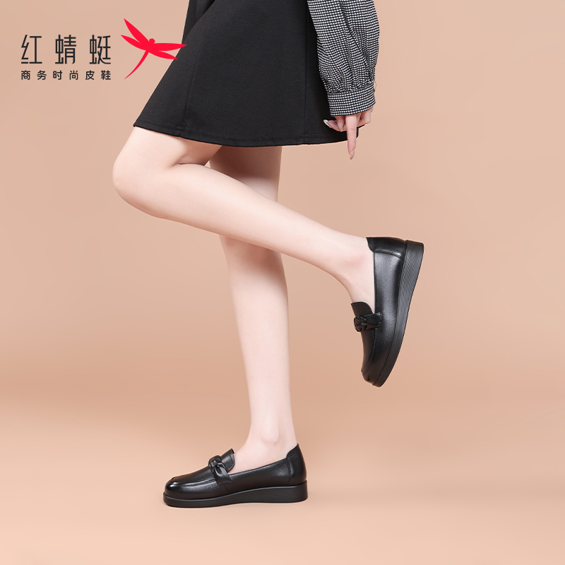 仙女风瓢鞋 秋季 浅口百搭中跟奶奶鞋 大码 真皮单鞋 女鞋 粗跟2025新款