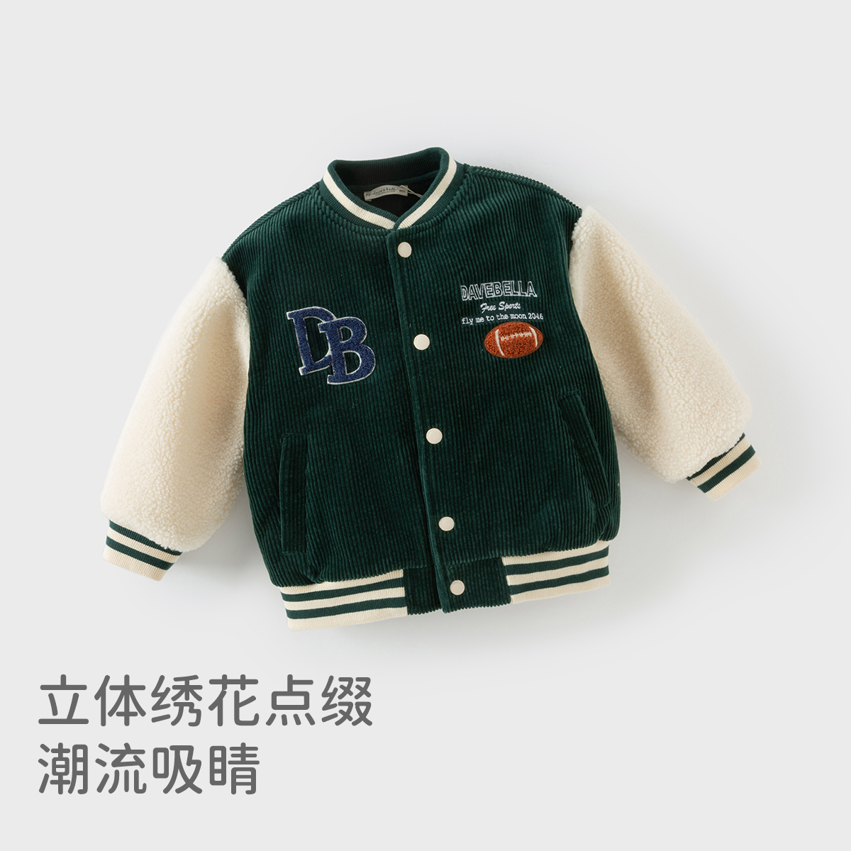 儿童摇粒绒棒球服男宝宝 戴维贝拉男童灯芯绒外套冬装 清仓特价