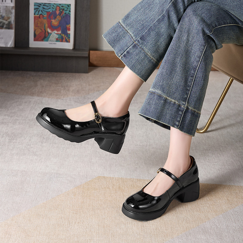 2025新款 温柔配裙子高跟鞋 春秋时尚 中粗跟单鞋 百搭法式 玛丽珍女鞋