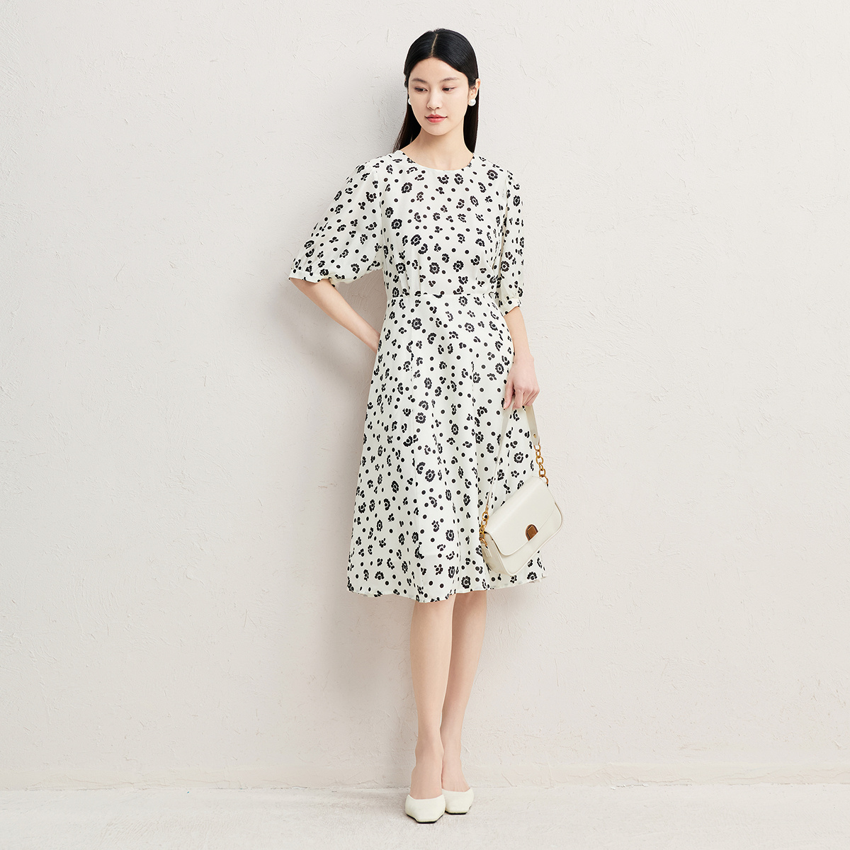 SNIDEL2025秋冬新品 印花茶歇连衣裙SWFO254139 优雅荷叶边小飞袖