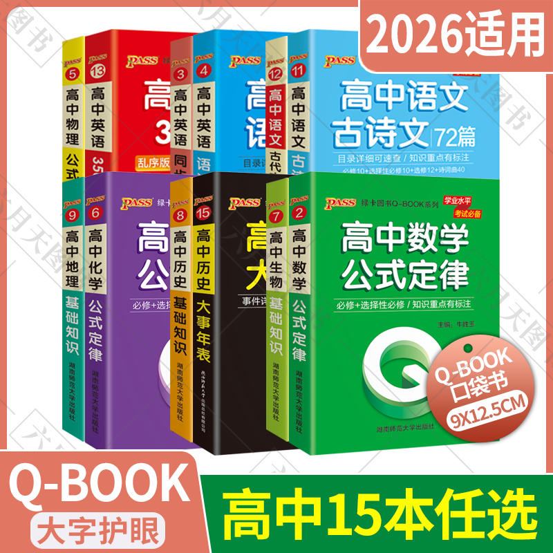 2026适用任选pass绿卡QBOOK系列高中语文必背古诗文72数学物理化学公式 定律生物政治历史地理基础知识英语词汇范文古代文化常识讲