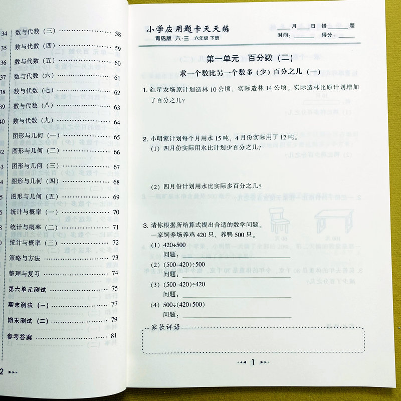 六三制青岛版 应用题六年级下册数学解决问题练习册思维训练6年级下册百分数圆柱圆锥正反比比列尺实际应用题数与代数图形几何题