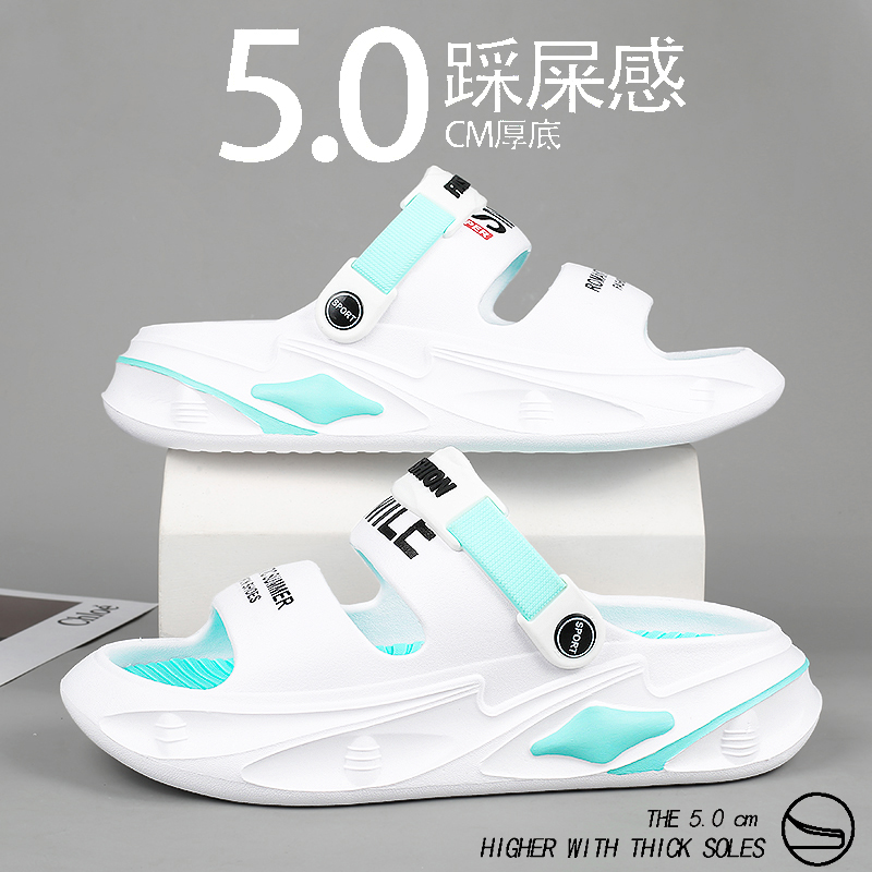 女小个子夏季 拖鞋 新款 外穿防滑沙滩鞋 时尚 朴西8cm厚底增高洞洞鞋