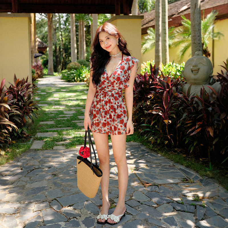 亦美珊连体泳衣女泡温泉2025新款 高级感绝美海边度假微胖遮肉裙式
