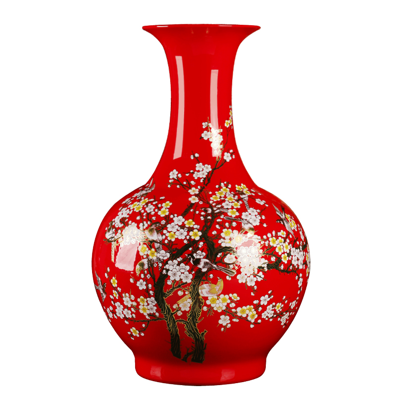 景德镇陶瓷器珐琅彩中国红落地大花瓶插花家居客厅装 饰品摆件大号