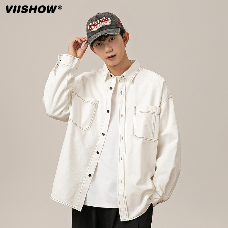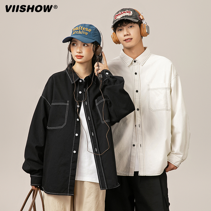 新款 VIISHOW日系简约长袖 秋季 男士 休闲百搭透气情侣衬衣外套 衬衫