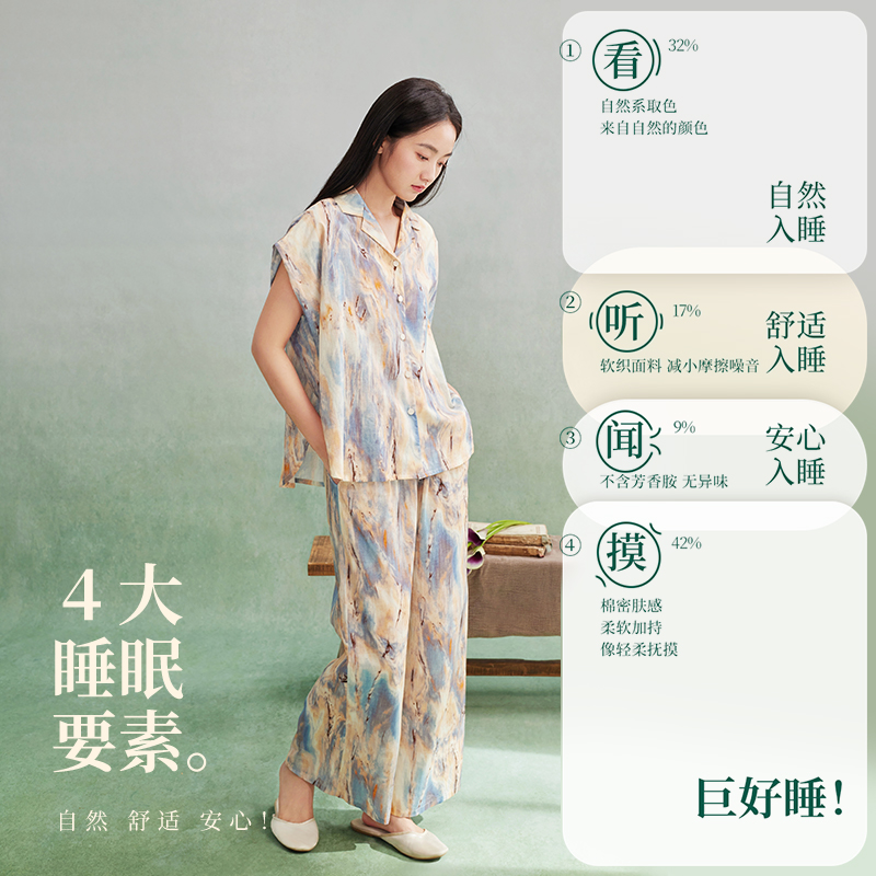 巨凉感 家居服套装 睡衣女夏季 纯棉梭织连肩袖 2025年新款 安之伴
