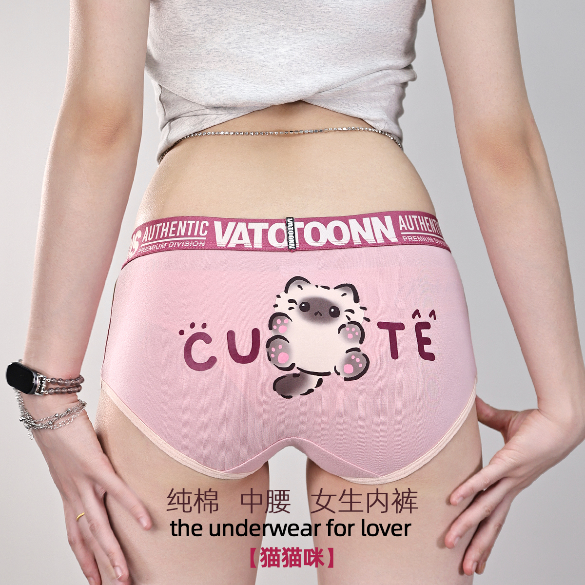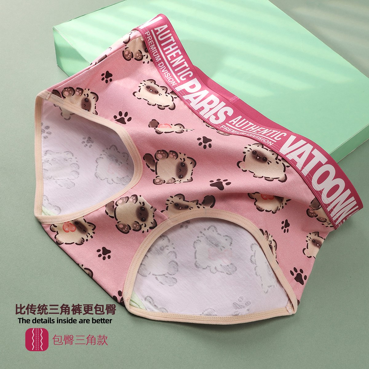 3条女纯棉内裤 可爱印花欧美潮流 三角中腰收腹易洗抗菌裆透气大码