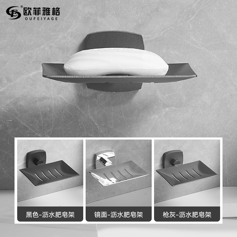 枪灰304不锈钢肥皂盒浴室香皂置物架卫生间壁挂式 沥水皂篮免打孔