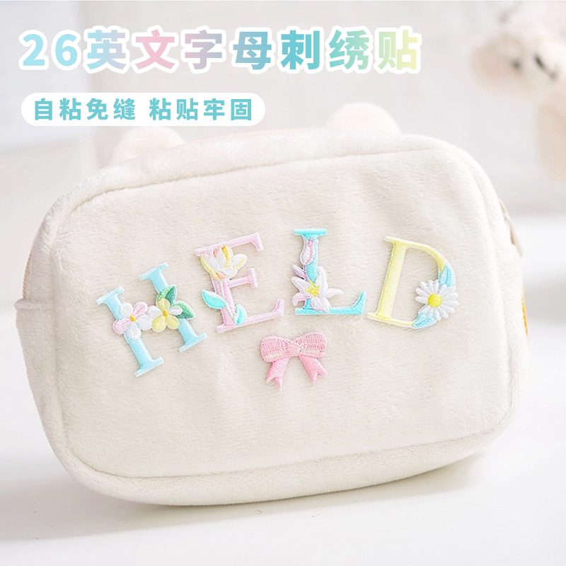 自粘免缝英文字母刺绣布贴名字diy装 饰贴书包贴纸布贴衣服补丁贴