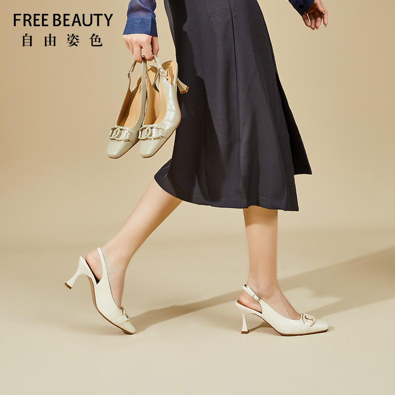 包头凉鞋 单鞋 女细高跟春夏季 百搭时装 真皮方头高跟鞋 自由姿色时尚