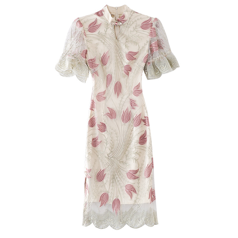 菲梦伊原创钉珠提花连衣裙女秋季 国风高端气质贵妇旗袍裙子 新中式