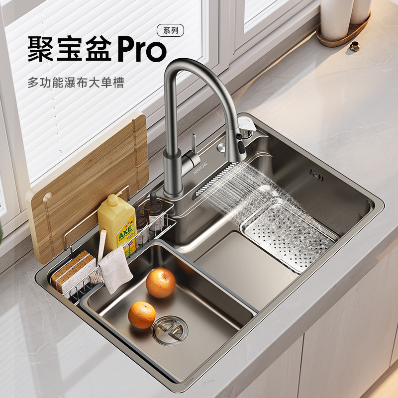 箭牌厨房304不锈钢纳米大单槽水槽洗菜盆洗碗槽套装