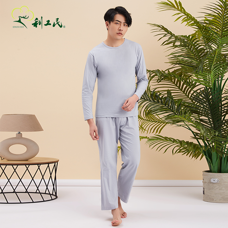 睡裤 圆领宽松秋蝉秋衣睡衣打底长裤 男42支纯棉长袖 利工民春秋薄款