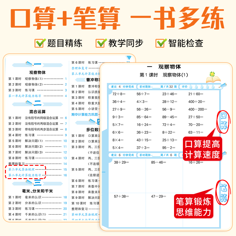苏教一 六小学思维训练同步练习册计算速算天天练53每天100道口算题卡北师大版 二 五 三年级四 2025口算大通关上册下册数学人教版