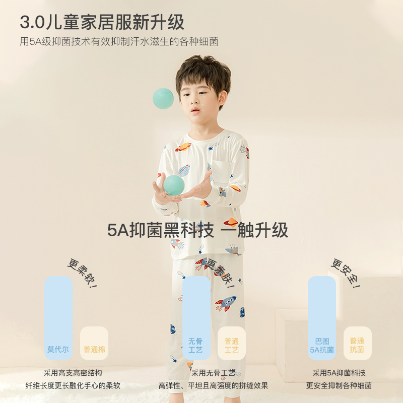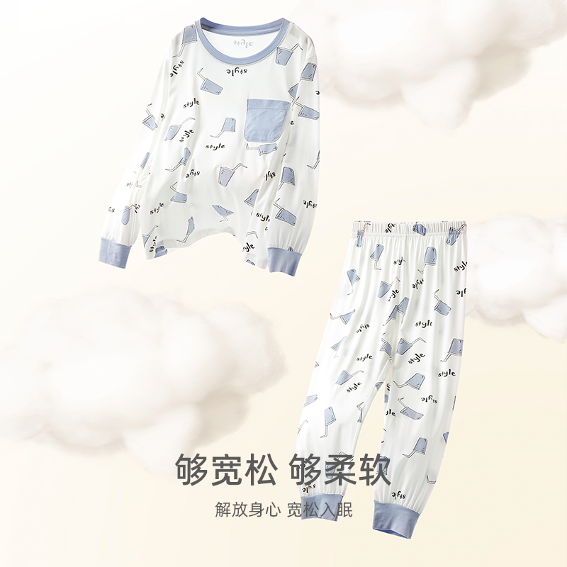 莫代尔长袖 儿童睡衣秋季 冰丝空调男女童家居服套装 50S超柔软