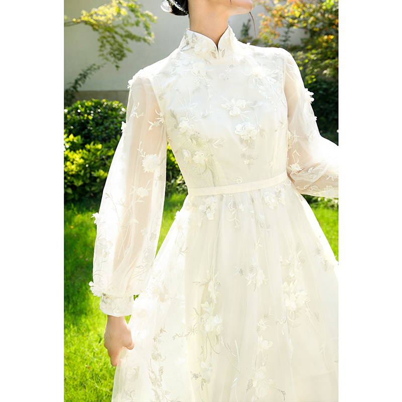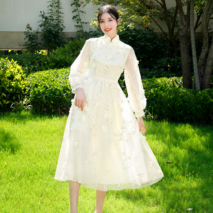新款 礼服春季 朗姿重工蕾丝刺绣法式 高级感连衣裙气质裙 免定金