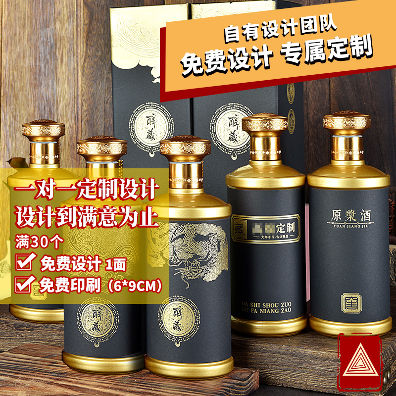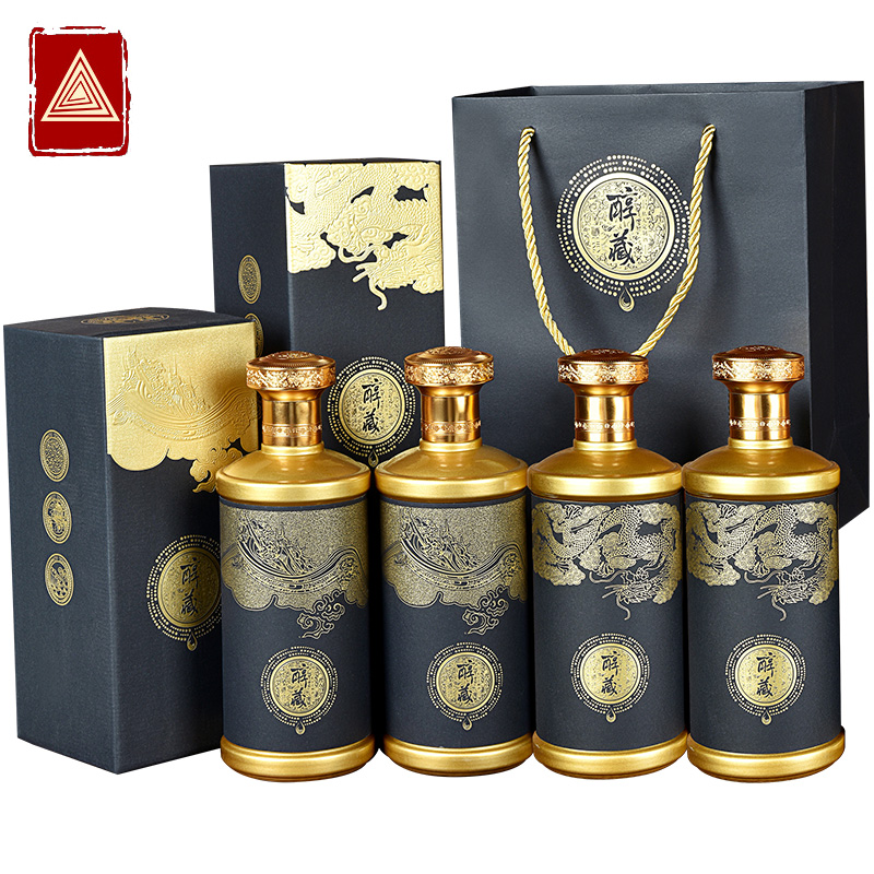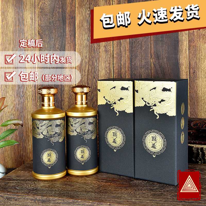 全套 礼盒酒瓶包装 白酒包装 盒定制黑色酒盒高档白酒瓶空瓶一斤包装