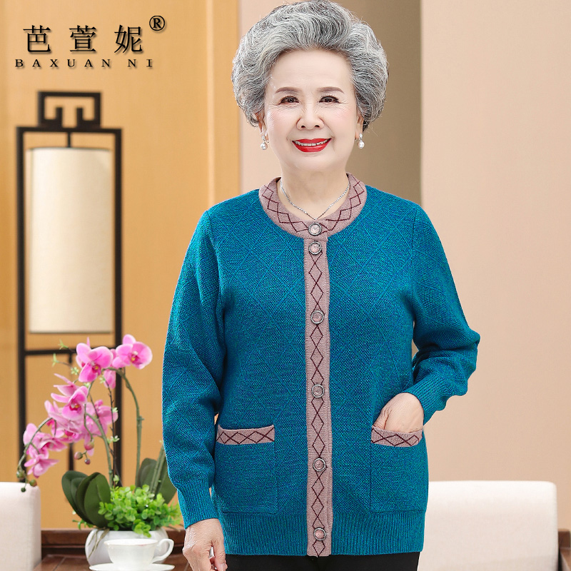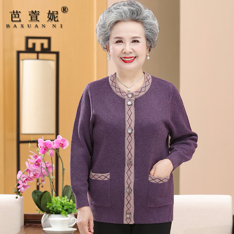 老太太加绒开衫 加大码 两件套 毛衣外套奶奶装 老年人女胖妈妈秋冬装