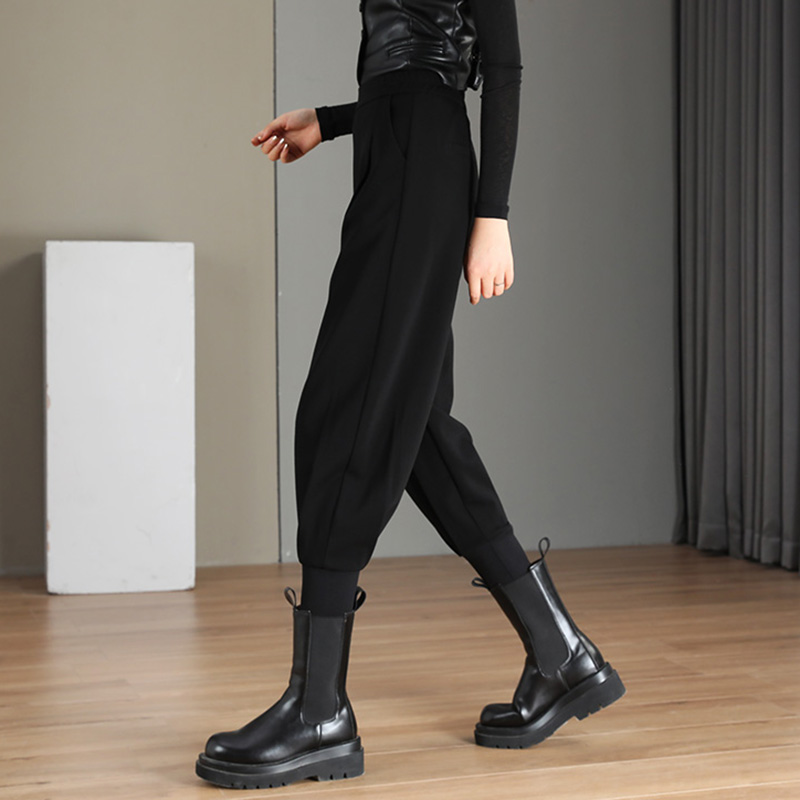女 秋冬小个子休闲萝卜马丁靴裤 女士黑色加绒束脚哈伦裤 女2025新款