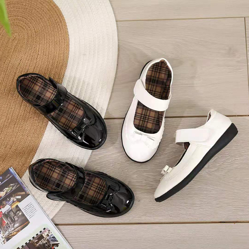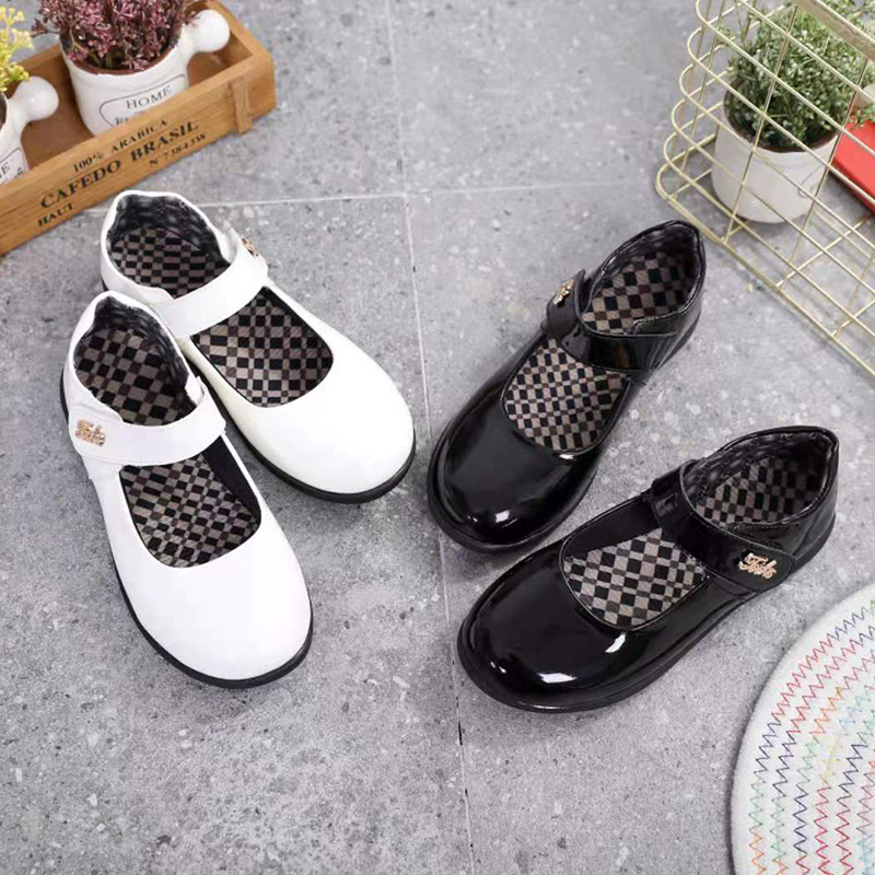 新款 女童校鞋 黑色白色鞋 小学生演出儿童鞋 子软底公主鞋 女童黑皮鞋