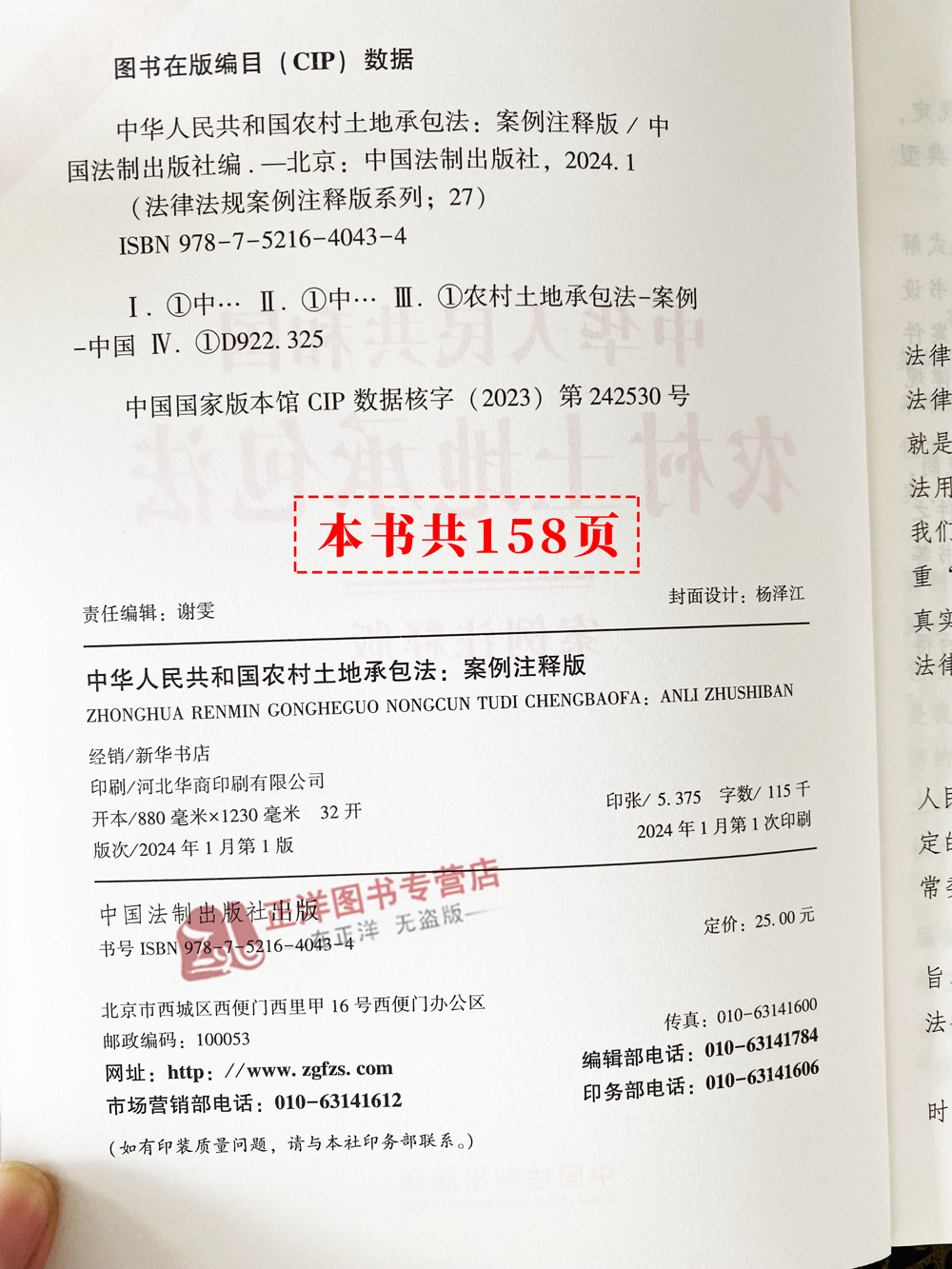案例注释版 中华人民共和国农村土地承包法 双色大字本 第六版 社9787521640434 正版 中国法制出版 2025适用