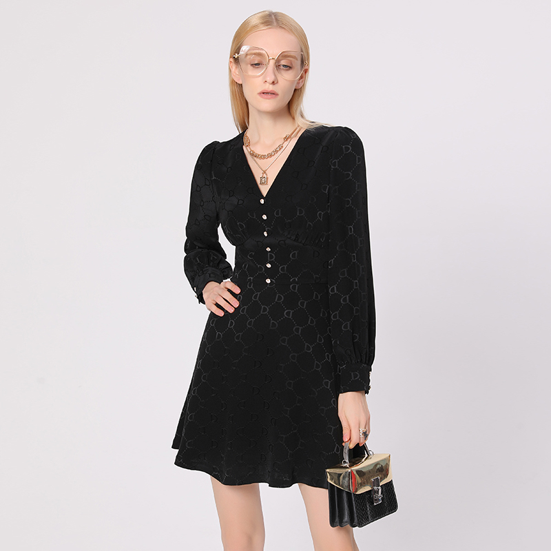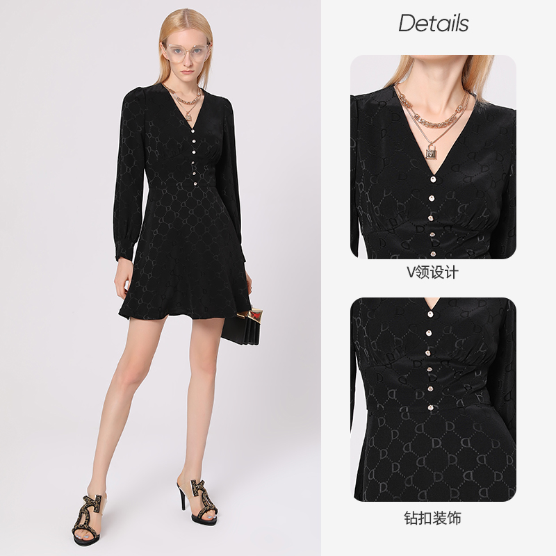 新款 SEE PIZZA连衣裙女2025秋季 甜美可爱小黑裙607183 YOU