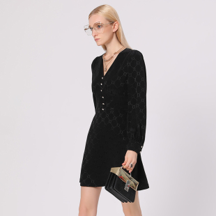 Juicy 古典优雅缎光丝绒长裙 Couture橘滋连衣裙女2025年秋冬新款
