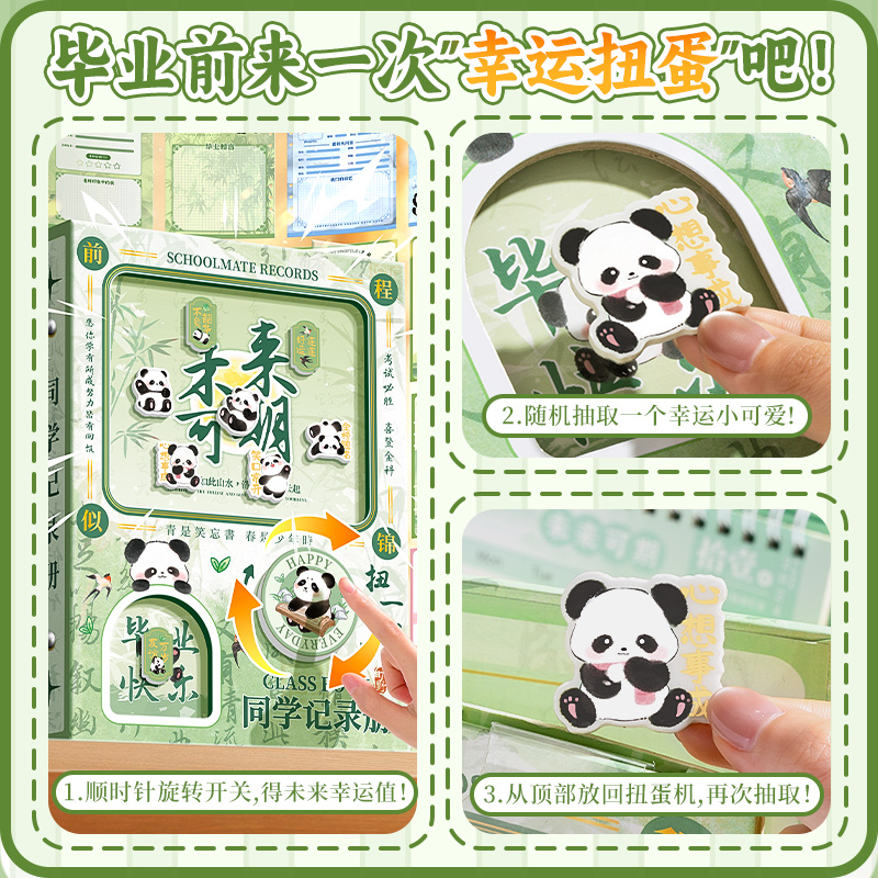 熊猫扭蛋机同学录创意2025新款 毕业成长纪念册小学生六年级高颜值活页本ing风小众毕业留言小升初中通讯录
