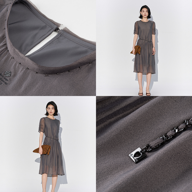 XZY 微胖御姐气质方领灰色吊带连衣裙女25年夏高级感收腰大摆长裙