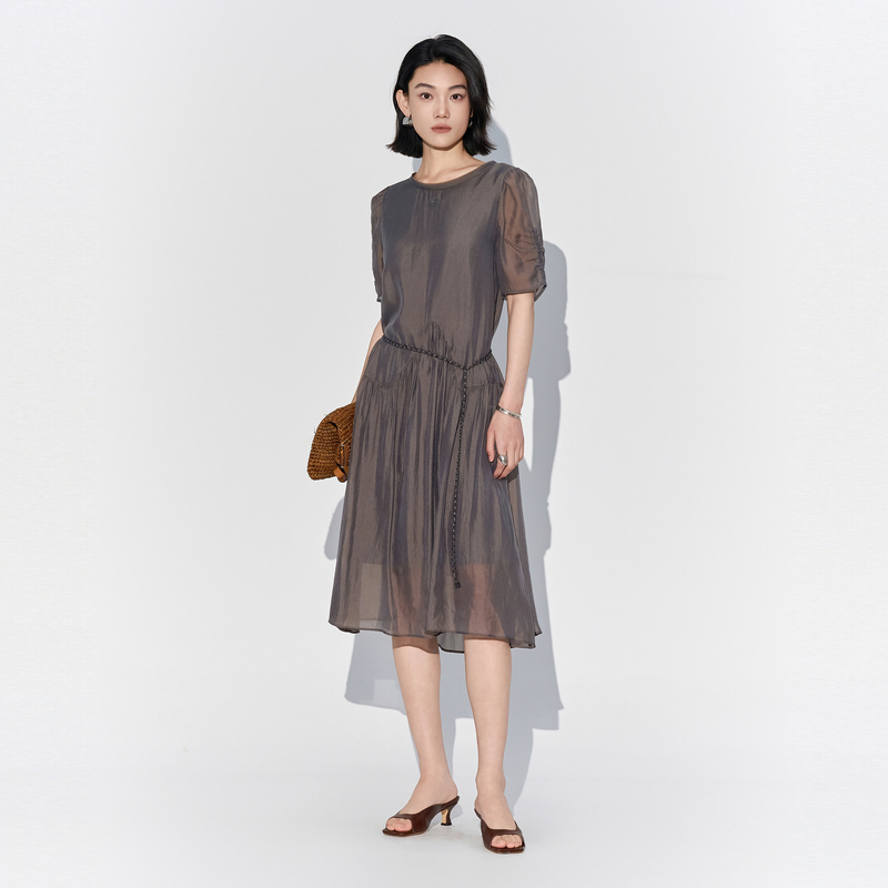 礼服垂褶紧身长款 HM女装 圆领无袖 新款 裙1268130 连衣裙2025秋季