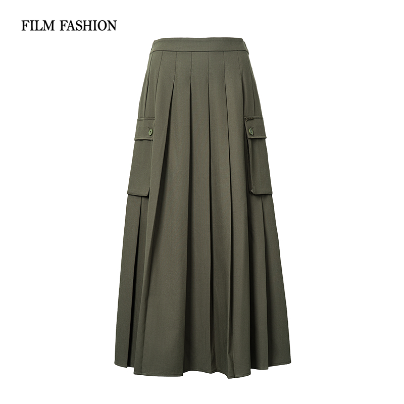 复古工装 新款 高腰百褶半身裙显瘦裙子气质休闲女 夏季 一电影一时装