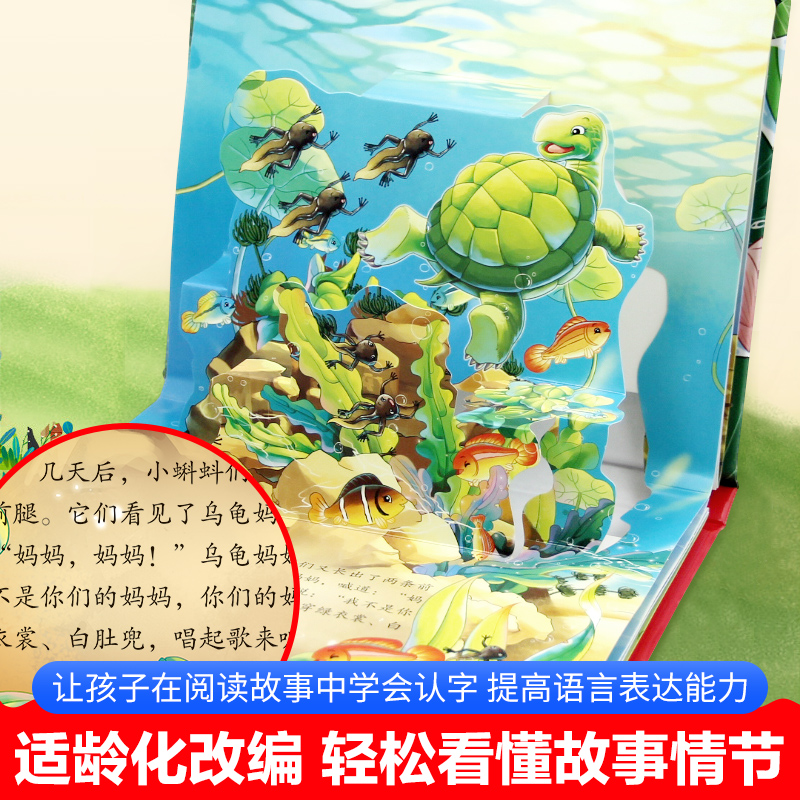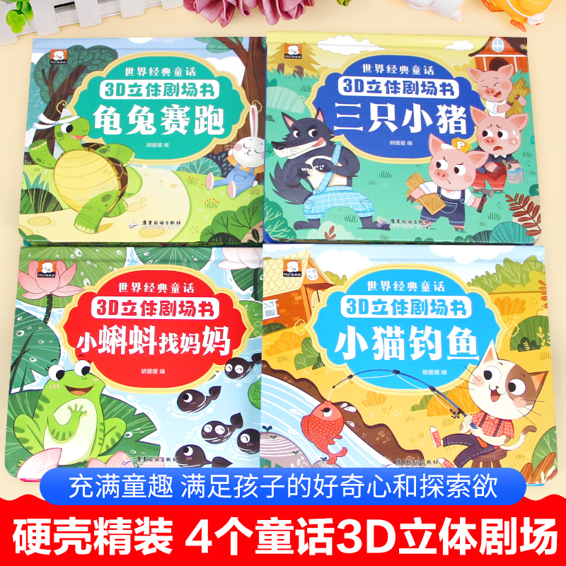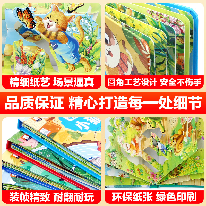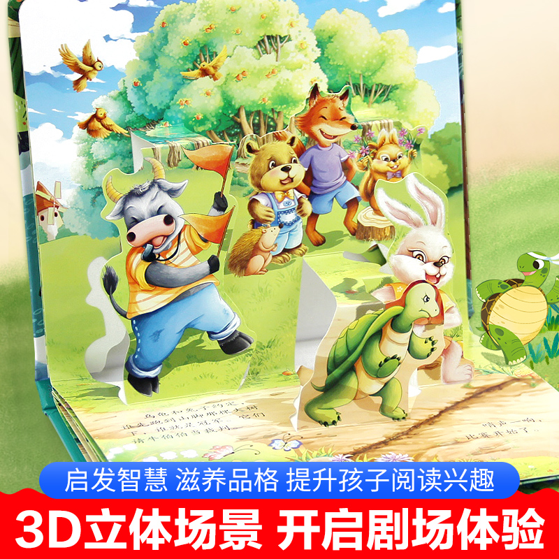 世界经典 4—5到6岁龟兔赛跑三只小猪小蝌蚪找妈妈小猫钓鱼认知 童话3d立体剧场书儿童立体书3d翻翻书幼儿园阅读绘本童话故事书3