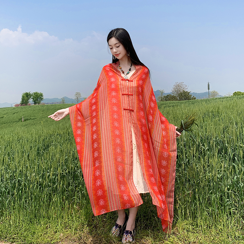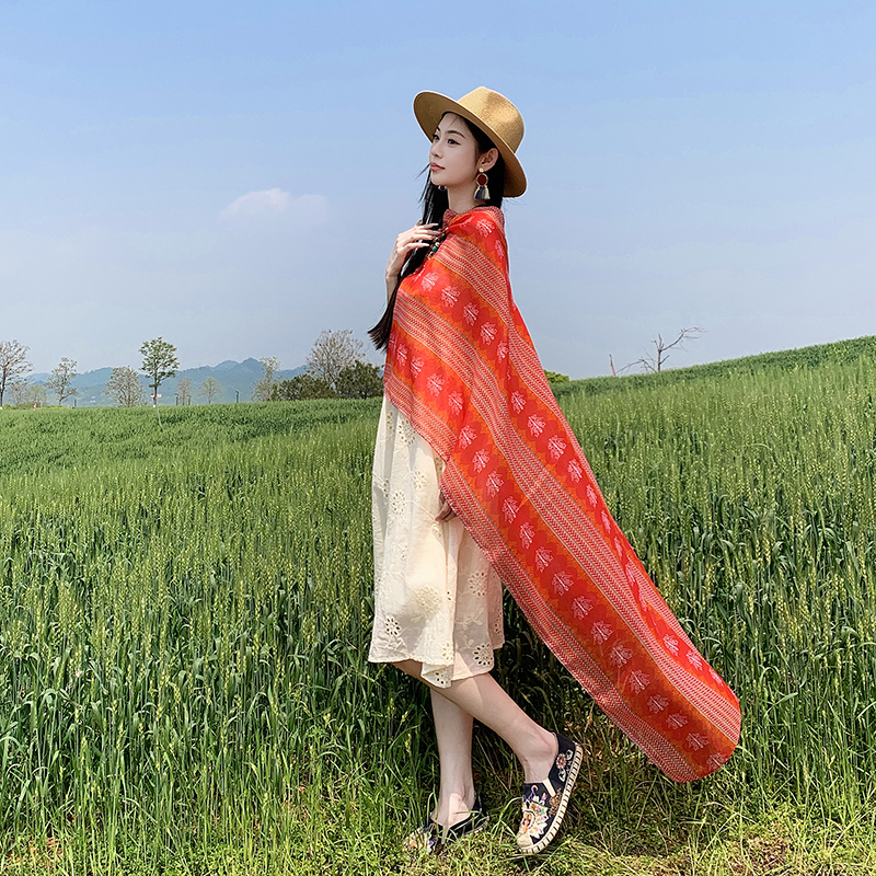 新中式 云南沙漠海边防晒丝巾盘扣纱巾薄 民族风围巾披肩外搭女夏季